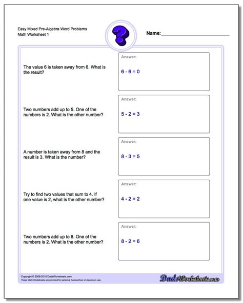 PreAlgebra Word Problems from www.dadsworksheets.com